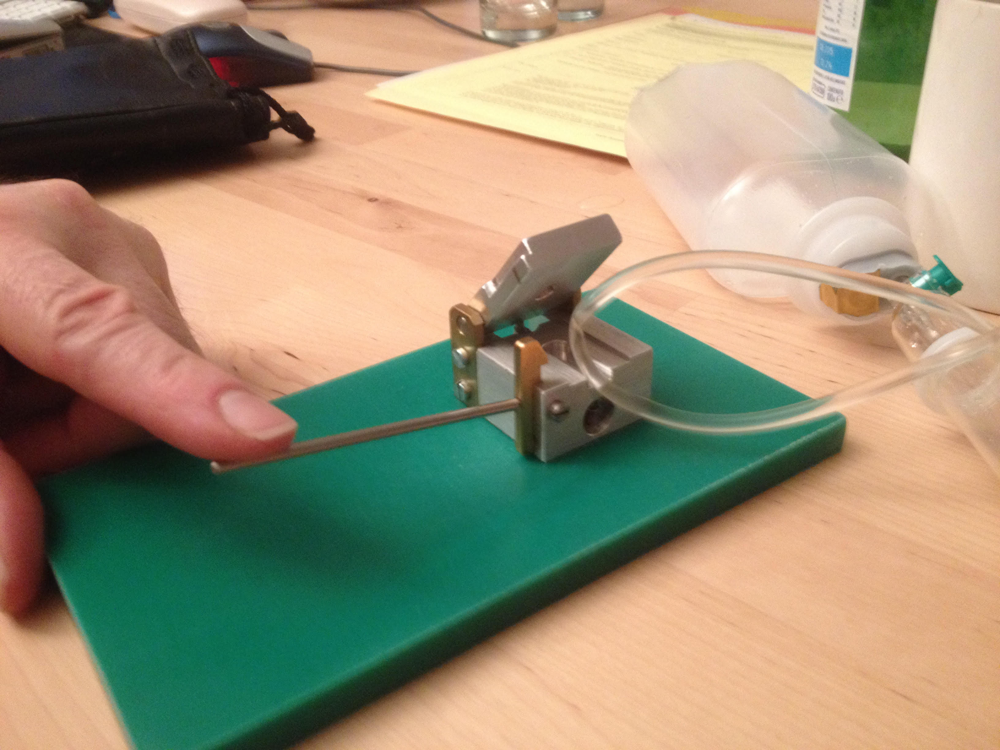 Il dispositivo che consente al paziente di rilasciare autonomamente il flusso del farmaco letale