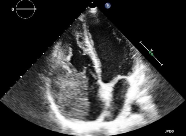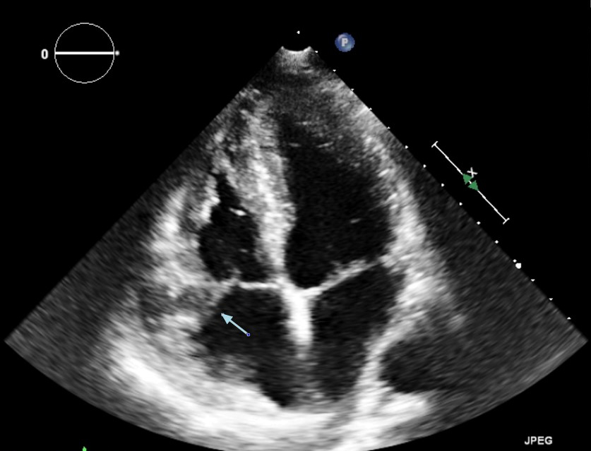 In merito alla diagnosi differenziale, i reperti ecocardiografici che suggerivano un tumore cardiaco maligno erano la posizione atriale e ventricolare destra della massa, la sua grande dimensione, la sua ampia base di impianto e il coinvolgimento della valvola tricuspide.