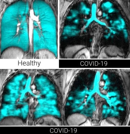 Fonte: Grist JT, Collier GJ, Walters H, Kim M, Chen M, Abu Eid G, Laws A, Matthews V, Jacob K, Cross S, Eves A, Durant M, Mcintyre A, Thompson R, Schulte RF, Raman B, Robbins PA, Wild JM, Fraser E, Gleeson F. Lung Abnormalities Depicted with Hyperpolarized Xenon MRI in Patients with Long COVID. Radiology. 2022 May 24:220069. doi: 10.1148/radiol.220069. Epub ahead of print. PMID: 35608443; PMCID: PMC9134268.