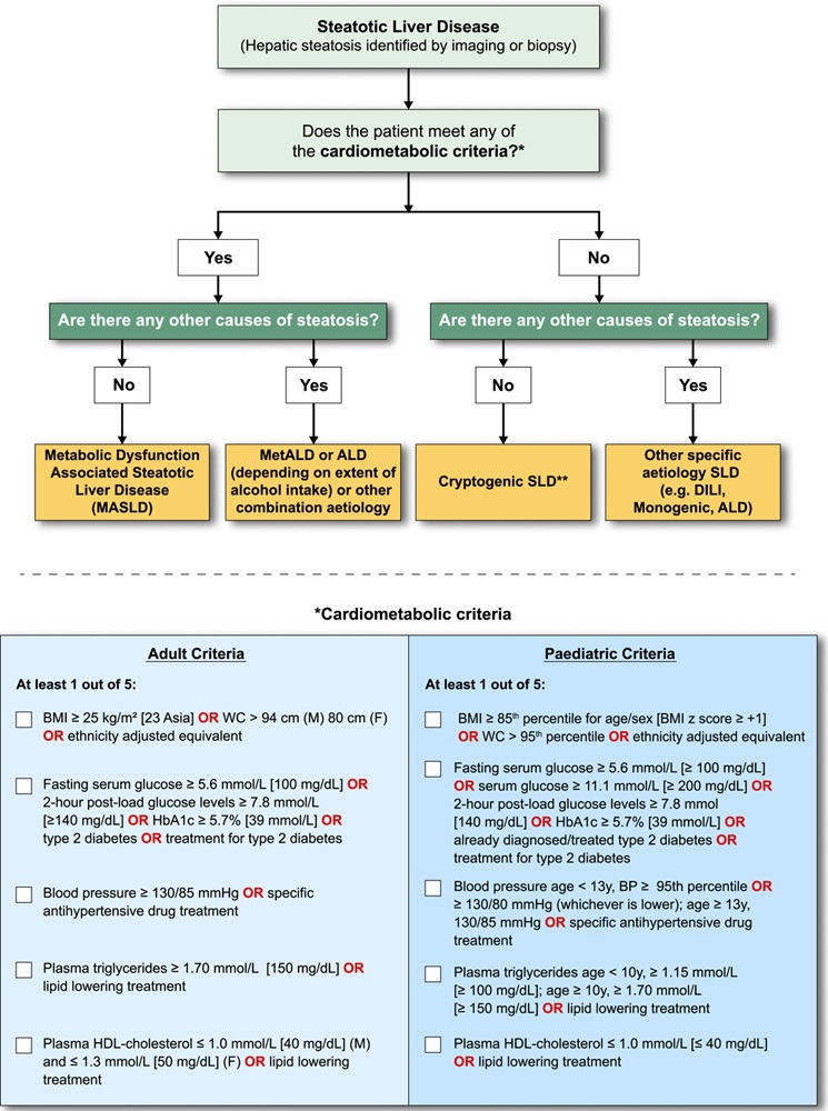 il termine principale su cui si basa la nuova terminologia è SLD (Spectrum of Liver Diseases), con un sottoinsieme denominato MASLD (Metabolic Associated Fatty Liver Disease), che richiede la presenza di almeno un fattore di rischio metabolico concomitante alla steatosi epatica.