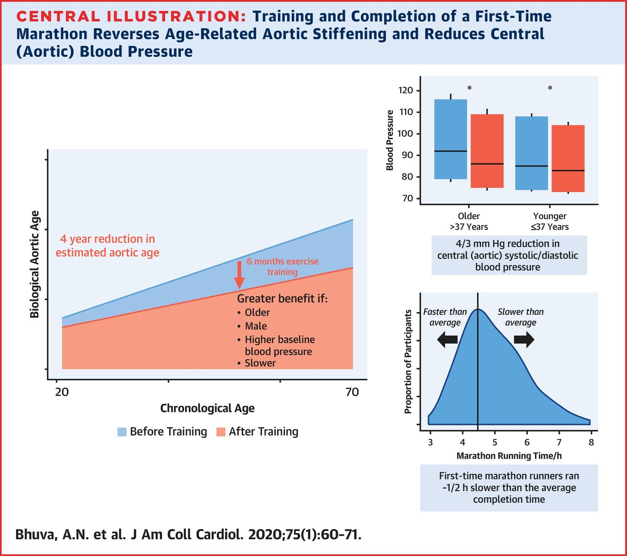 Fonte: Bhuva AN, et al. Training for a first-time marathon reverses age-related aortic stiffening. J Am Coll Cardiol 2020; DOI: 10.1016/j.jacc.2019.10.045