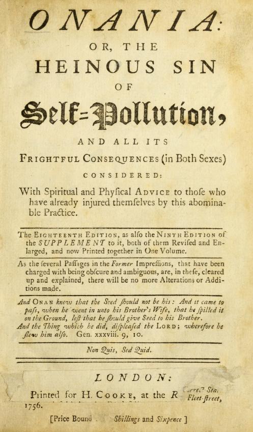 Nel 1715, fu pubblicata a Londra una piccola opera anonima, "Onania", il cui sottotitolo era già tutto un programma: "O l'odioso peccato della masturbazione, e tutte le sue terribili conseguenze per entrambi i sessi, con consigli morali e fisici a coloro che hanno già causato danno a se stessi da questa pratica abominevole". Un altro manuale anti-masturbazione - il genere aveva già avuto un suo piccolo successo - ma che sarebbe diventato un best-seller sbalorditivo per il suo tempo.