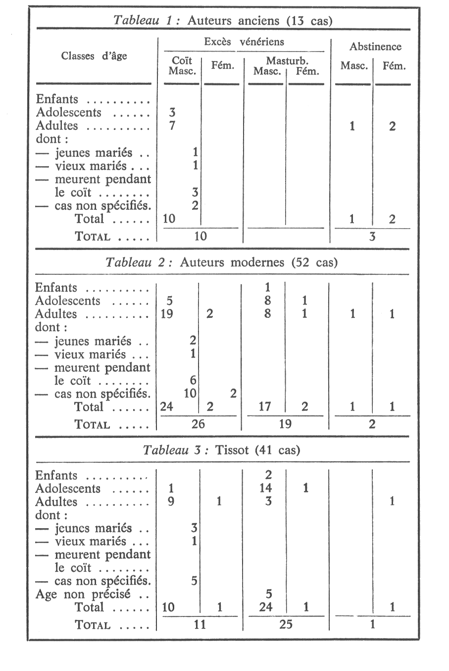 Nel frattempo, giusto per divertimento, e perché si tratta di una buona notizia, notate come nel suo studio Tissot non riporti nessun caso di morte durante il coito (a differenza dei suoi predecessori).