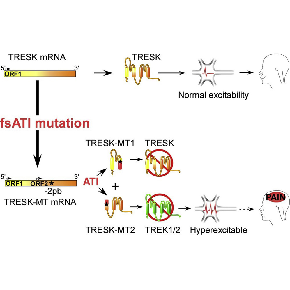 Fonte: Royal P, Andres-Bilbe A, Ávalos Prado P, Verkest C, Wdziekonski B, Schaub S, Baron A, Lesage F, Gasull X, Levitz J, Sandoz G. Migraine-Associated TRESK Mutations Increase Neuronal Excitability through Alternative Translation Initiation and Inhibition of TREK. Neuron. 2018 Dec 12. pii: S0896-6273(18)31048-1. doi: 10.1016/j.neuron.2018.11.039.