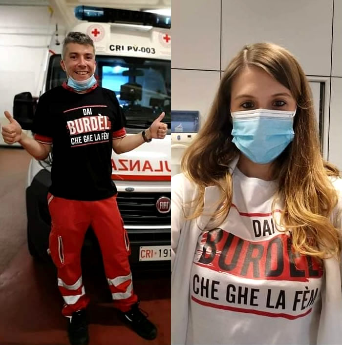Una frase che mi è venuto spontaneo scrivere in un momento in cui, per ovvie ragioni, l'aria era molto molto pesante e la gente era molto preoccupata. Ho lanciato questa frase in un post su Facebook. Poi, un giorno, una mia amica mi ha detto: «Ti faccio una sorpresa» e si è presentata in ospedale con delle magliette che aveva fatto stampare. Quando ho visto le magliette ho pensato che potesse essere una buona venderle e usare i soldi raccolti per la Fondazione Benefattori Cremaschi ONLUS, che gestisce una struttura assistenziale a Crema. In quel momento aveva problemi nel reperire i dispositivi di protezione individuale per il personale. Io non pensavo di riuscire a vendere più di qualche decina di magliette, ne abbiamo vendute quasi 2.000. Le abbiamo vendute in tutto il cremasco e anche nei territori limitrofi, grazie alla diffusione delle informazioni e dell iniziativa su Facebook e Instagram. Per una piccola città come Crema, è un risultato importante.