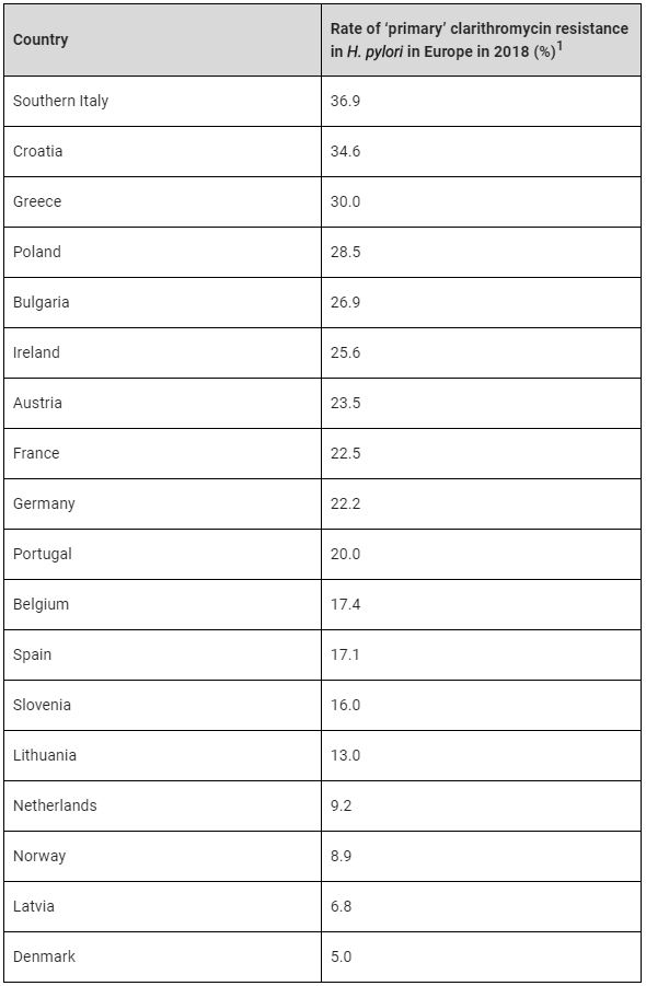 1. Megraud, F et al., 2019. European survey of Helicobacter pylori primary resistance to antibiotics – Evolution over the last 20 years. Presented at UEG Week Barcelona October 21, 2019