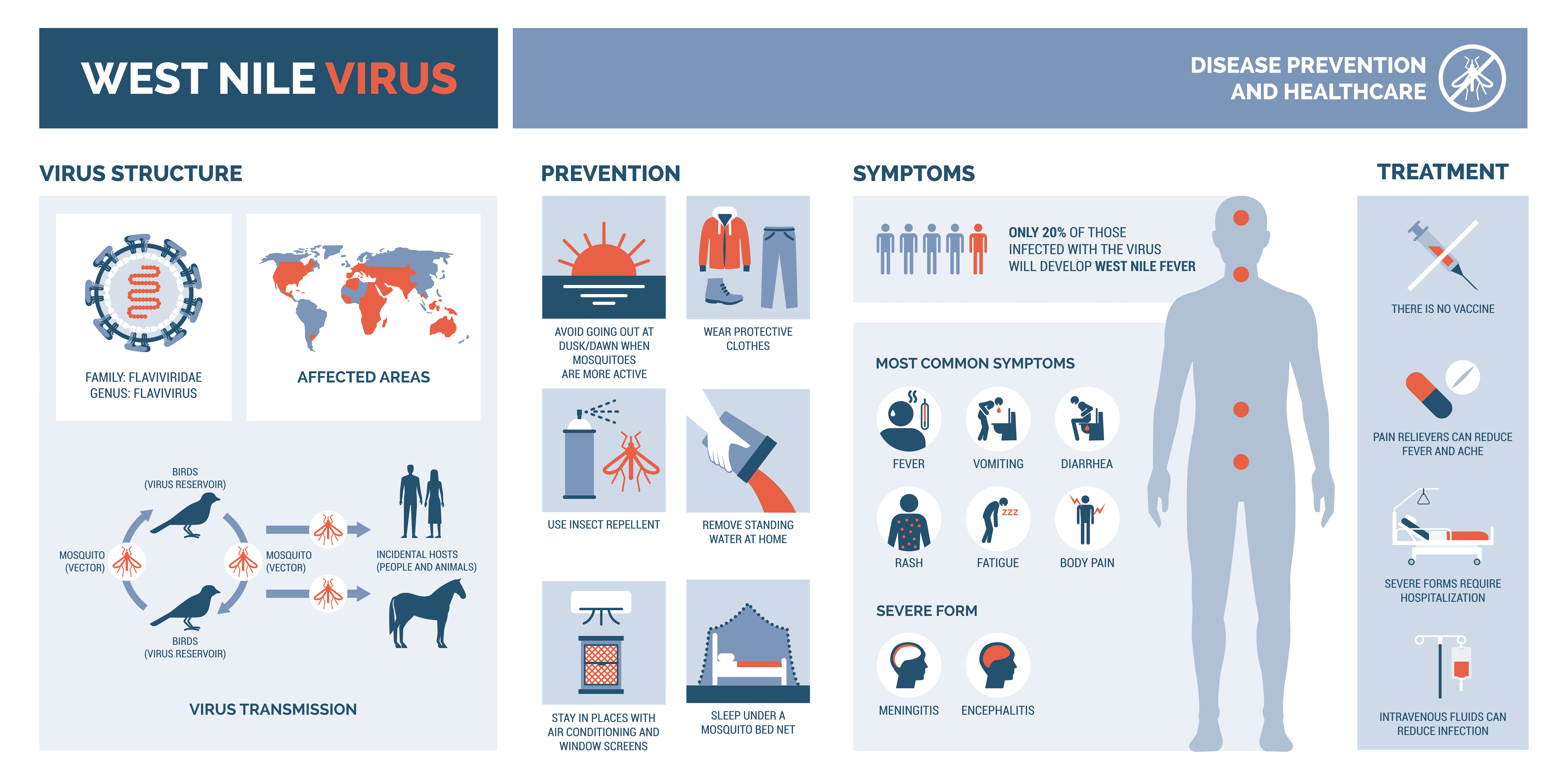 Infografica sul virus West Nile (photocredit: elenabsl, Adobestock)